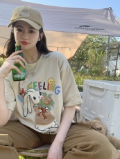 Baby dress top Korean style loose commuting sweet stylish floral high-end ramie fluffy small shirt short sleeve collarless top