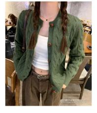 A Korean retro-style button cabled knit cardigan for women, new autumn arrival, loose Korean style, unique and flattering long-sleeved top.