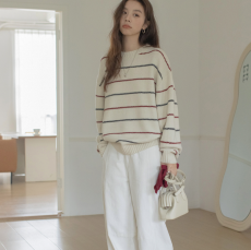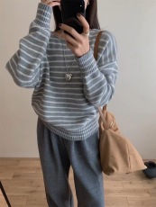 Korea Dongdaemun 2025 Spring New Korean Style Personality Striped Knit Casual Slouchy Style Elegant Slimming Sweater