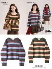 American retro v-neck pullover sweater for women in autumn and winter outfits lazy style design loose contrasting sweater top