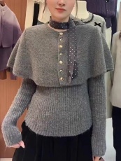 French-style Hepburn-style double-breasted cloak sweater set, true two-piece set, autumn and winter new, versatile, slimming, with brooch