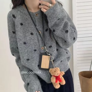 French retro polka dot ribbon crew neck cloak cardigan knitted sweater soft and warm women's winter two-piece set